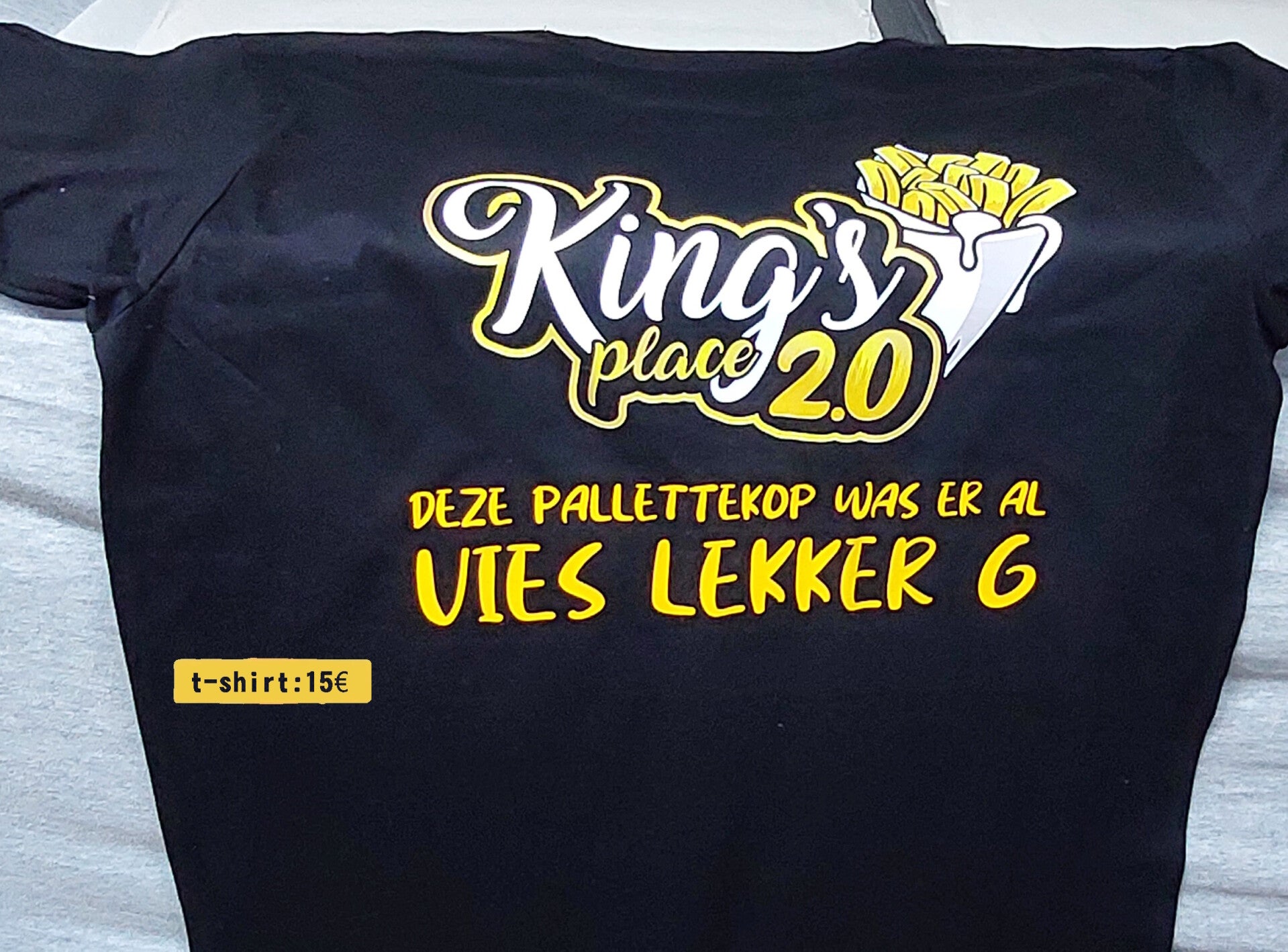 Voorkant logo King's Place of King's Place2.0 met madooo alsook achterkant bedrukt ik ben da ook ikke of deze pallettekop was er al...